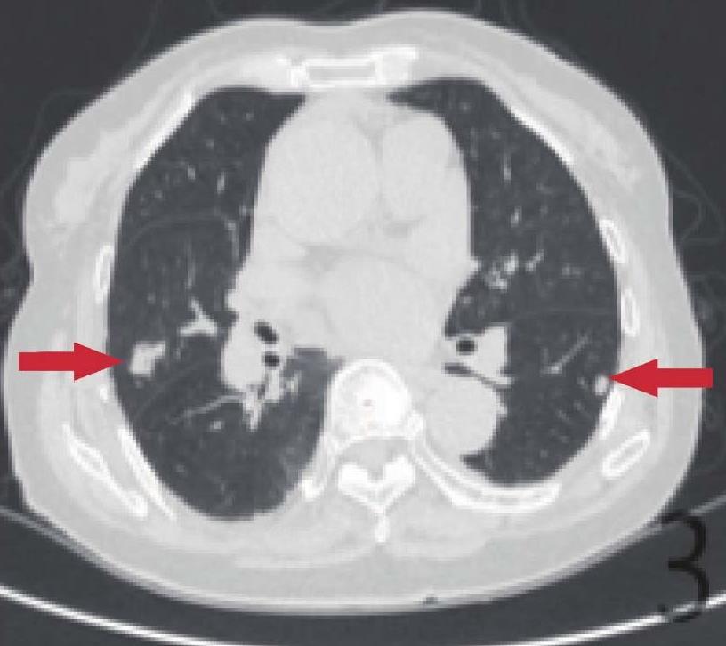 随着体检胸部CT的普及,越来越多的无症状肺结节被发现,现在有很多人谈“肺结节”色变,其实不用那么紧张,体检发现的肺结节大部分都是良性的。2011年8月4日,《新英格兰杂志》发表了一个非常重要的临床随机研究结果。研究的题目是“低剂量CT筛查肺癌降低肺癌的死亡率”。这个研究是由美国癌症研究所、国家肺癌筛查研究小组来执行的。这个肺癌筛查随机研究共有53454例高危患者纳入研究范围,患者被随机分为两组:每年接受低剂量CT检查或者常规胸透。研究结果如下:低剂量CT筛查组肺癌的阳性率在3年内是24.2%,而胸透组3年阳性率仅为6.9%。但是有意思的是,在这些显示阳性的病例中,低剂量CT组有96.4%是假阳性。这个结果告诉我们,体检发现的肺结节大概只有3.6%是肺癌。除了肺癌,肺结节还常见于下列疾病: